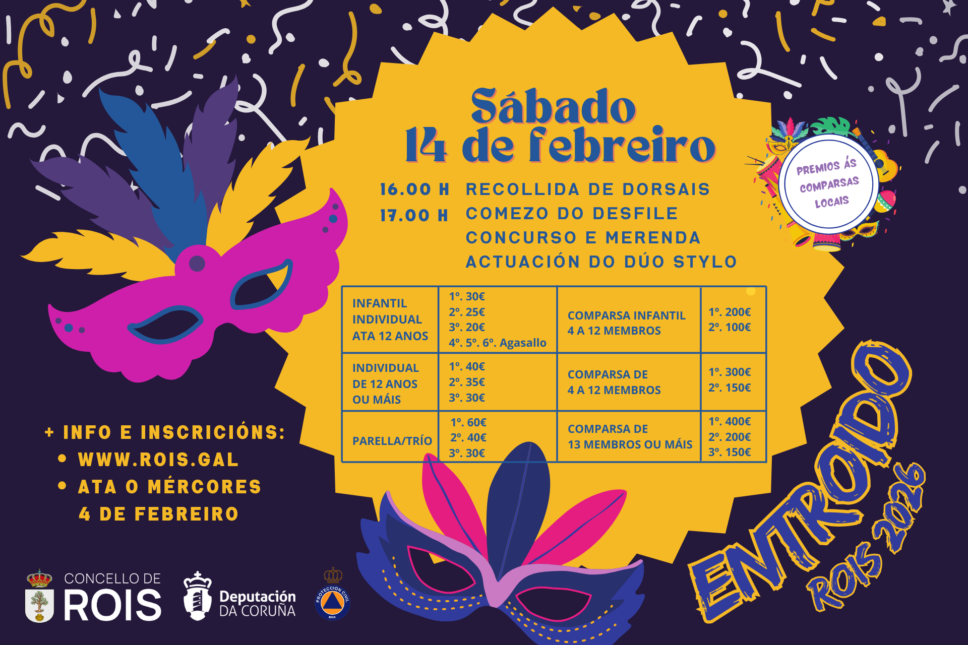 Rois repartirá máis de 2.000 euros en premios no Concurso de Entroido que se celebrará o sábado 14 de febreiro